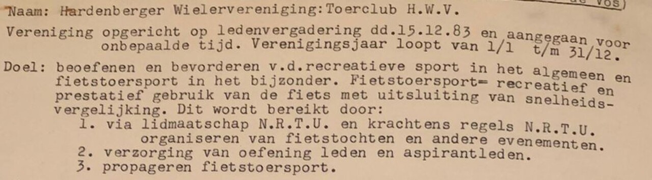 Toerclub H.W.V. bestaat op 15 december 2023 40e jaar!